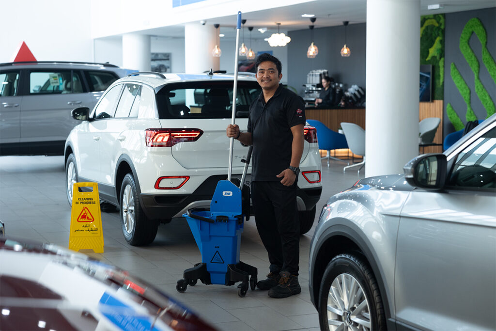 - Window & Façade Cleaning for mall exteriors and showroom displays.